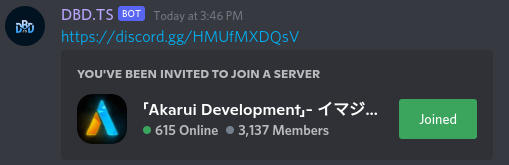 Returns a invite to the Akarui Development server.